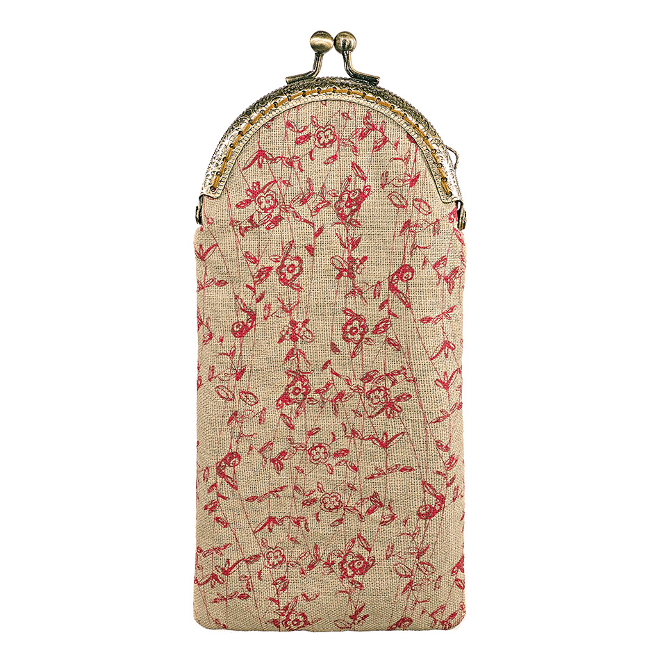 Ρομαντική θήκη γυαλιών από τυπωμένο* λινό ύφασμα. Εσωτερικά έχει μαλακή προστατευτική ενίσχυση αφού είναι φοδραρισμένη με πολυεστερικό καπιτονέ ύφασμα και βάτα. Υπάρχει και η δυνατότητα πρόσθεσης κοντής αλυσίδας για τον καρπό (+1€)