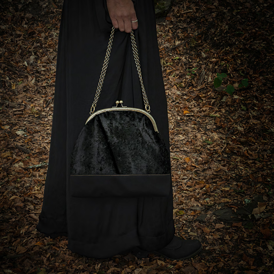 Αυτή είναι η Nature Bag. Μια ευρύχωρη τσάντα που μπορεί να φορεθεί χιαστί, στον ώμο άλλα μα κρατηθεί και στο χέρι. Είναι φτιαγμένη απο βελούδο με μακρύ πέλος και βαμβάκι. Το ύψος της τσάντας είναι 30 cm. Το πλάτος στο κάτω μέρος είναι 33 cm περίπου. Το πλαϊνό τμήμα είναι 11 cm. Το άνοιγμα του κλείστρου είναι 25 cm και είναι ραμμένο βελονιά-βελονιά στο χέρι.