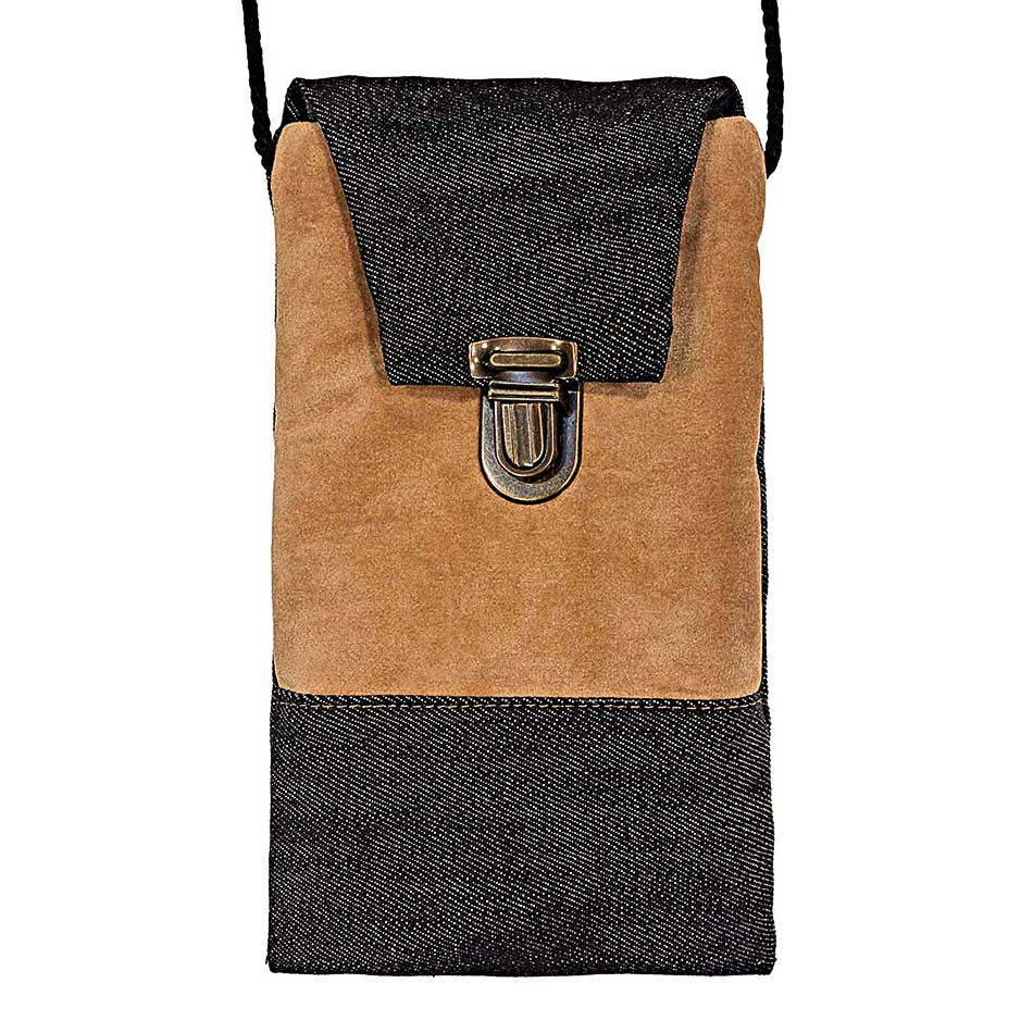 Θήκη γυαλιών ή κινητού από Suede και βαμβάκι. Εσωτερικά έχει μαλακή προστατευτική ενίσχυση αφού είναι φοδραρισμένο με πολυεστερικό καπιτονέ ύφασμα και βάτα. Το κορδόνι είναι 100% βαμβάκι.