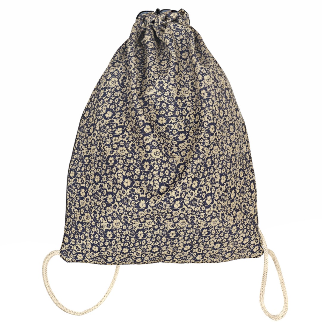 Το μπροστινό μέρος είναι λινό τυπωμένο με μελάνια νερού*. To πίσω μέρος, όπως και τα κορδόνια, είναι από βαμβάκι. Η εσωτερική φόδρα είναι εφοδιασμένη με μια τσέπη με φερμουάρ.
