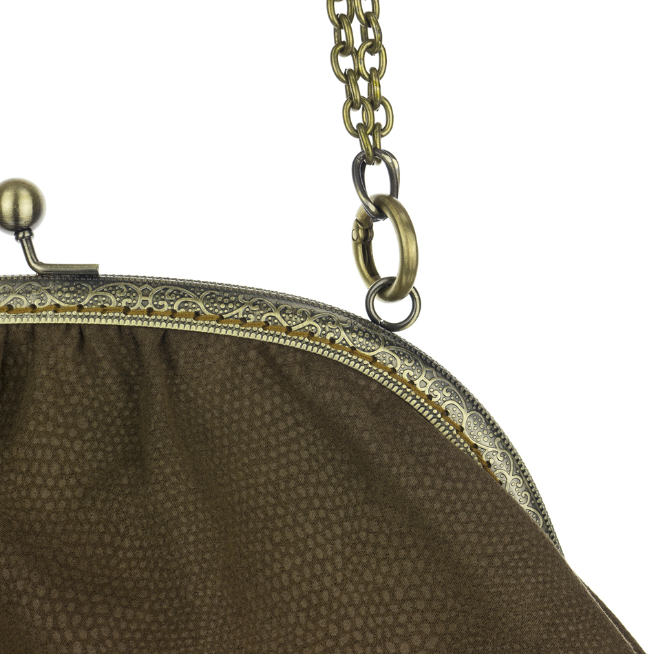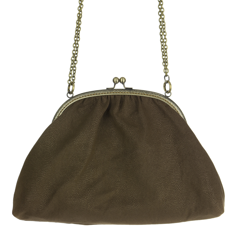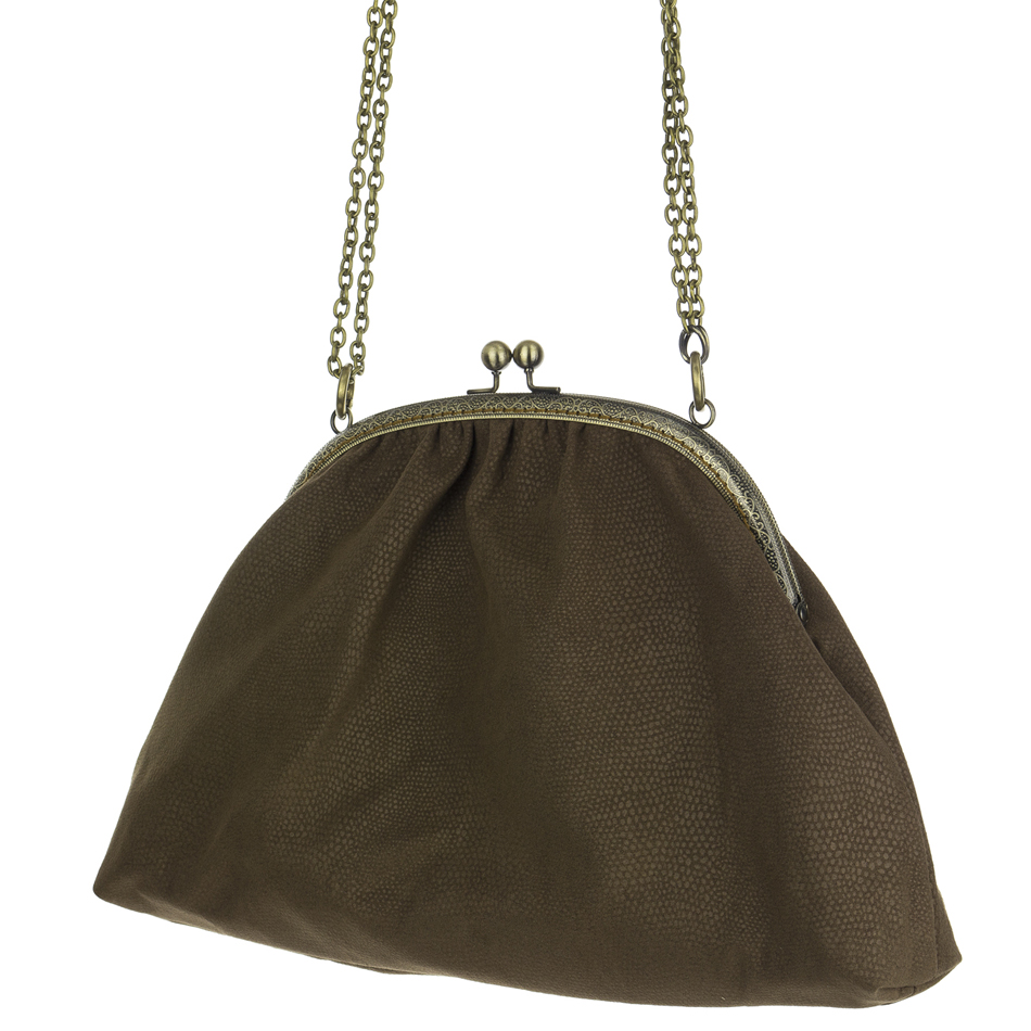Αυτή είναι η Dafne's Bag. Μια θηλυκή τσάντα που μπορεί να φορεθεί χιαστί και στον ώμο ρυθμίζοντας με τους ανοιγόμενους κρίκους το μήκος της αλυσίδας. Αφαιρώντας τελείως την αλυσίδα μπορεί να κρατηθεί και σαν clutch. Το κλείστρο της είναι ραμμένο βελονιά-βελονιά στο χέρι. Το ύψος της τσάντας είναι 22cm, το πλάτος στο κάτω μέρος 36cm και το άνοιγμα του κλείστρου είναι 25 cm.