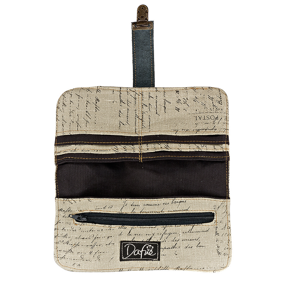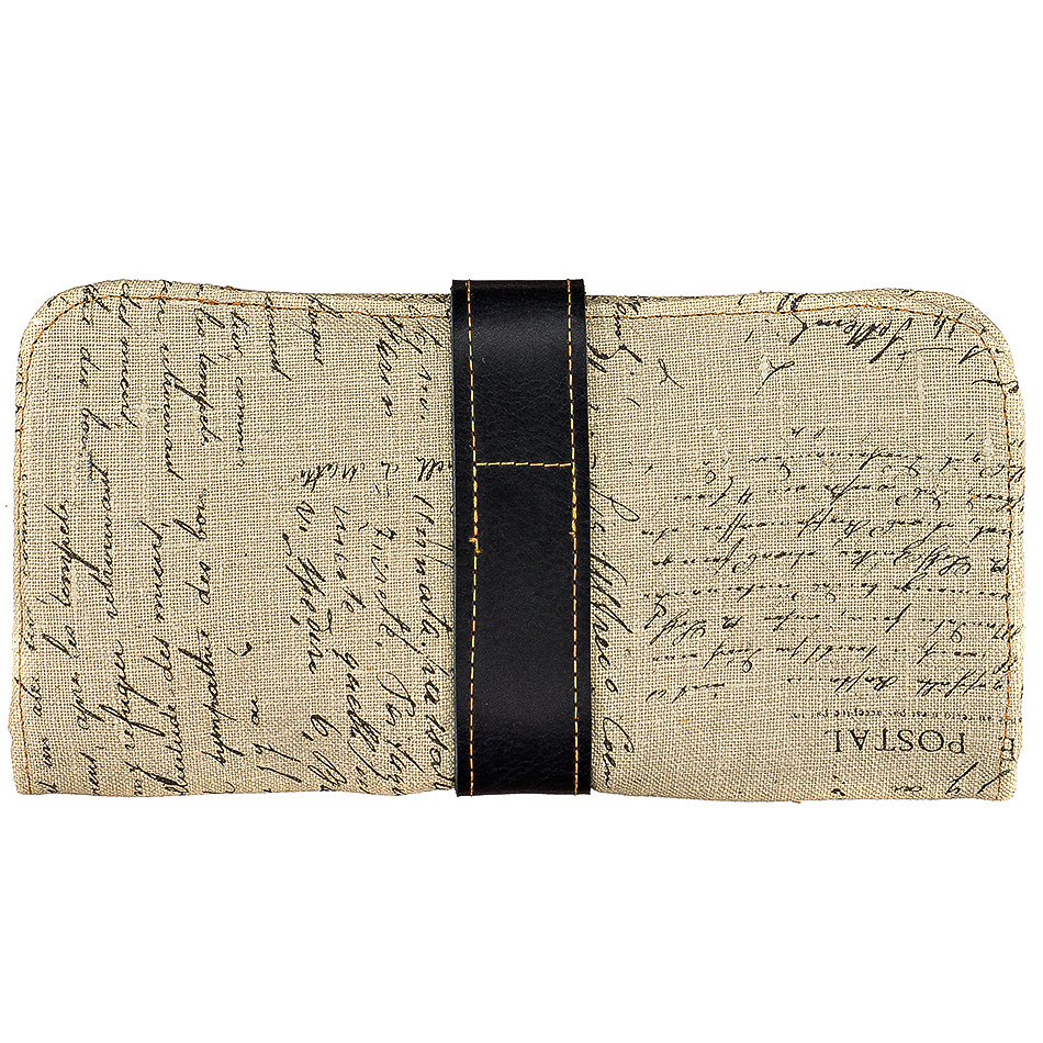 Το εξωτερικό μέρος όπως και μέρη του εσωτερικού είναι είναι λινό τυπωμένο με μελάνια νερού*. Το εσωτερικό μέρος, είναι βαμβάκι. Το περιμετρικό λουρί κλεισίματος είναι γνήσιο δέρμα μόσχου, φυτικής δέψης.
