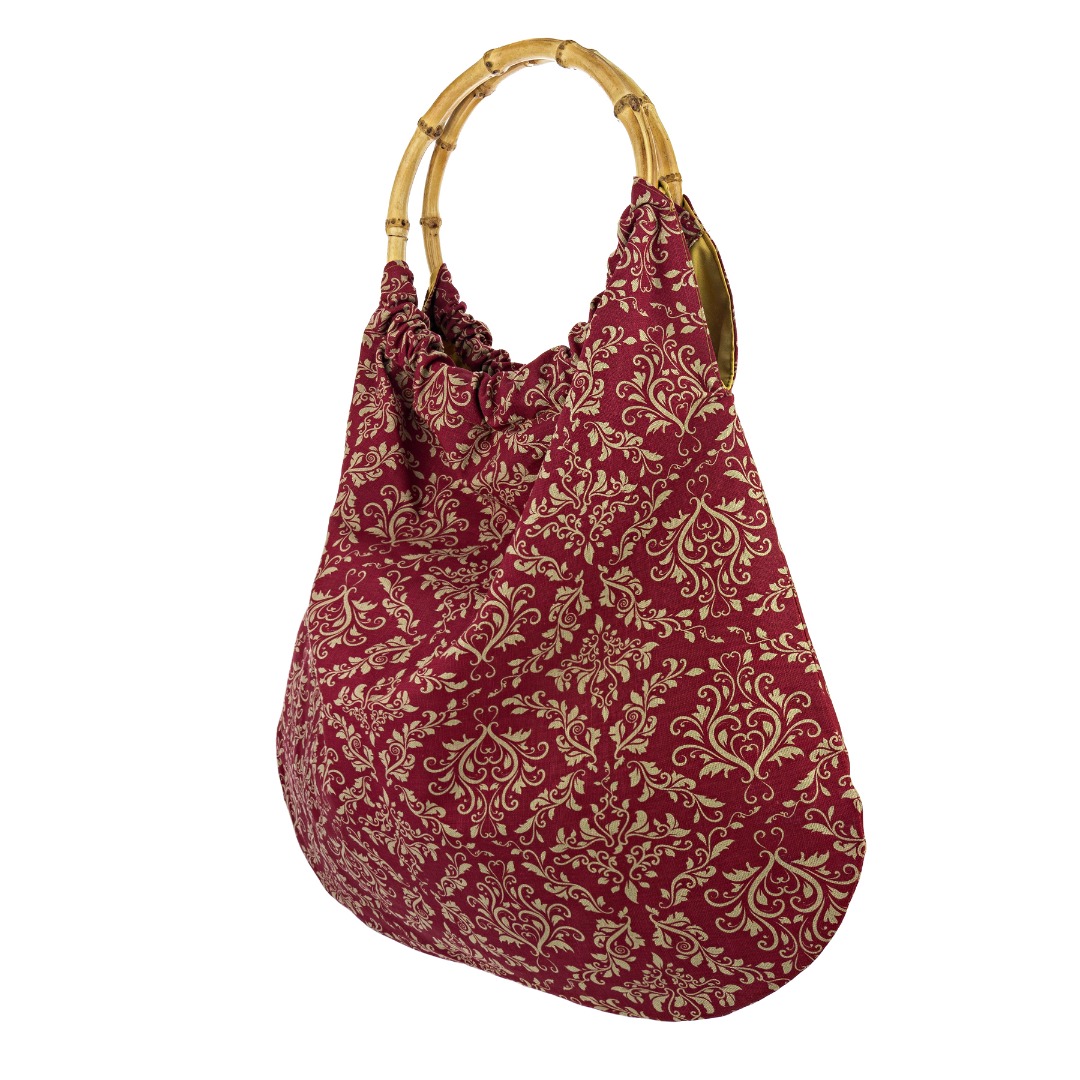 Ευρύχωρη και στυλάτη τσάντα με χερούλια από μπαμπού. Τα χερούλια έχουν εσωτερική διάμετρο 17εκ και είναι αρκετά μεγάλα ώστε να μπορούν με άνεση να φορεθεί η τσάντα στον ώμο, να κρατηθεί στο χέρι ή στον αγκώνα. Η τσάντα είναι κατασκευασμένη από λινό, τυπωμένο στο χέρι με πιστοποιημένα οικολογικά μελάνια νερού*.