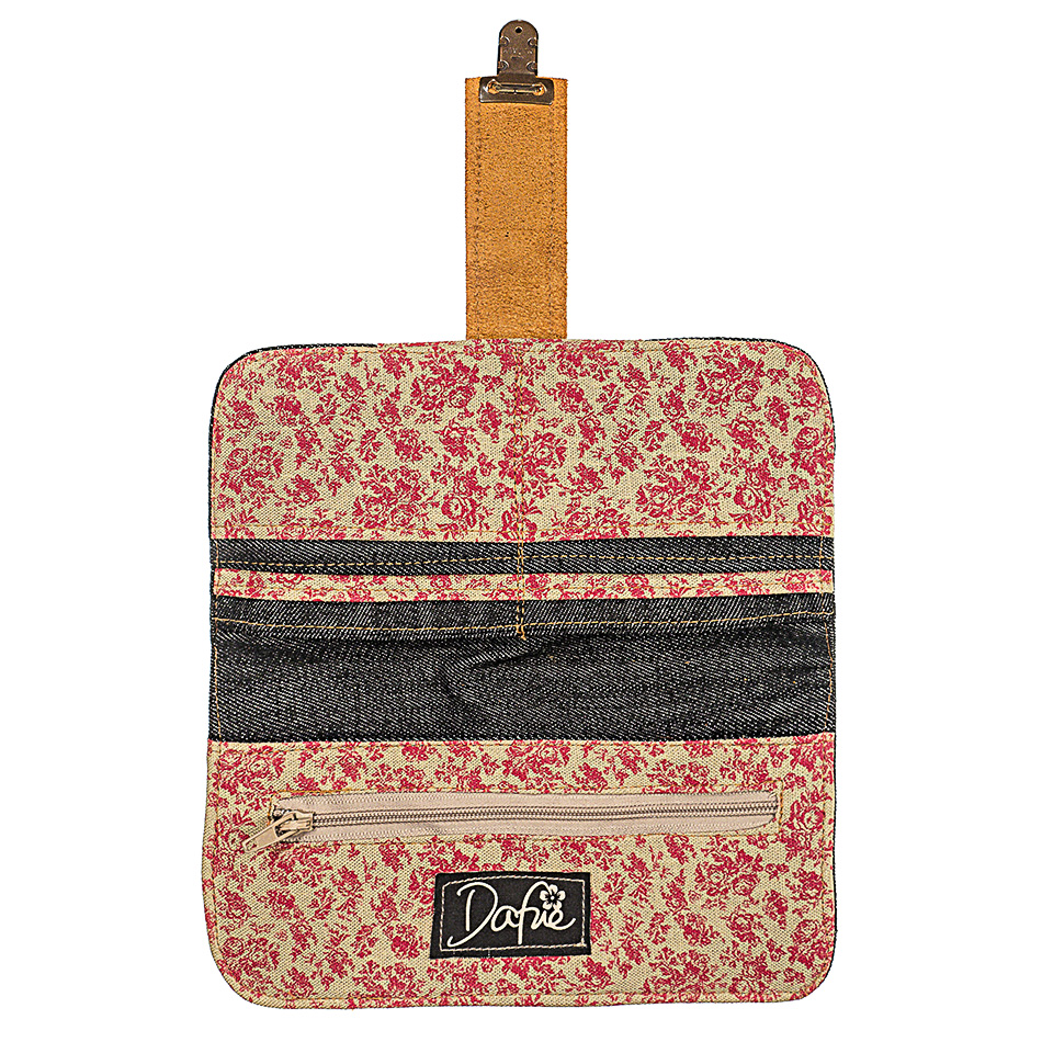 Οι συναλλαγές γίνονται πιο ευχάριστες, εύκολες και χαρούμενες με το Wallet. 'Εχει 6 θέσεις για κάρτες, 2 μεγάλες θέσεις για χαρτονομίσματα και μια ευρύχωρη θήκη με φερμουάρ. Το εξωτερικό μέρος είναι βαμβακερό jean σε συνδυασμό με λινό τυπωμένο με μελάνια νερού*. Το εσωτερικό μέρος είναι επίσης βαμβάκι και λινό. Το περιμετρικό λουρί κλεισίματος είναι γνήσιο δέρμα μόσχου, φυτικής δέψης.