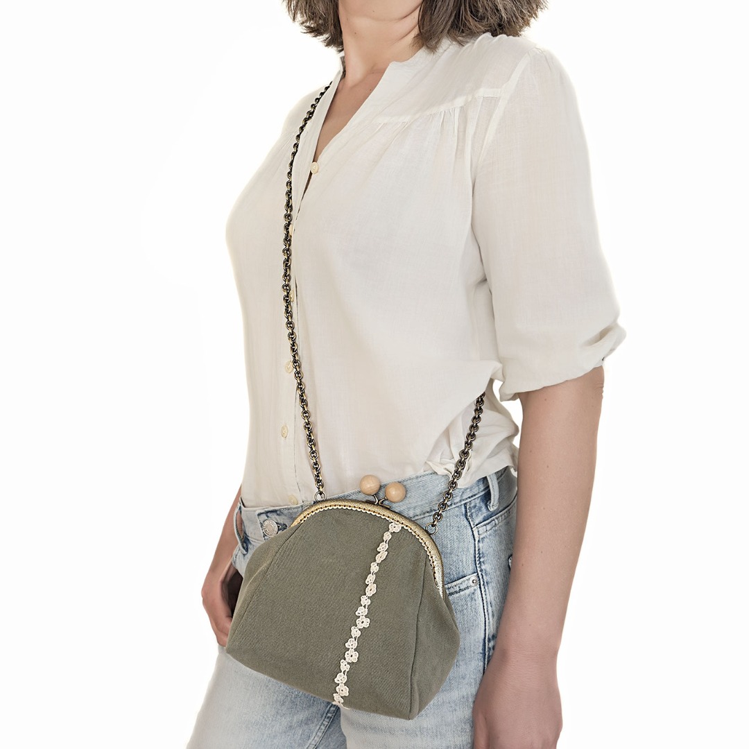 H Cozy Bag Medium είναι μια πολύ θηλυκή τσάντα, που σας επιτρέπει να έχετε στην έξοδό σας, ότι χρειάζεστε, χωρίς όγκο. Η λεπτή αλυσίδα 124cm, σας επιτρέπει να τη φορέσετε και σαν crossbody, αλλα και να την έχετε στον ώμο. Το ύψος της τσάντας είναι 17 cm και το πλαϊνό τμήμα που δίνει το βάθος 11cm και το πλάτος 20cm. Tο άνοιγμα του κλείστρου είναι 16.5 cm και είναι ραμμένο στο χέρι βελονιά βελονιά. H μπίλια στο κλείστρο είναι φυσικό ξύλο.