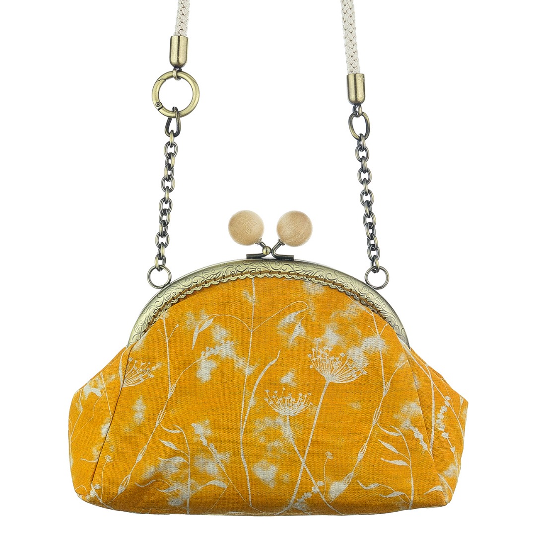 Απελευθερώστε τα χέρια σας και απολαύστε την έξοδό σας χωρίς να κρατάτε την τσάντα σας. Ένα ”περιδέραιο” για τη μέση που ρυθμίζοντας στο μέγιστο το βαμβακερό κορδόνι μπορεί να φορεθεί και σαν cross body. Το ύψος της τσάντας είναι 14 cm και το πλαϊνό τμήμα που δίνει το βάθος 8cm και το πλάτος 24cm. Tο άνοιγμα του κλείστρου είναι 16.5 cm και είναι ραμμένο στο χέρι βελονιά βελονιά. H τσάντα είναι φτιαγμένη από τυπωμένo* λίνο ύφασμα και jean. H μπίλια στο κλείστρο είναι φυσικό ξύλο. Ο ρυθμιστής του κορδονιού είναι αυθεντικό δέρμα.
