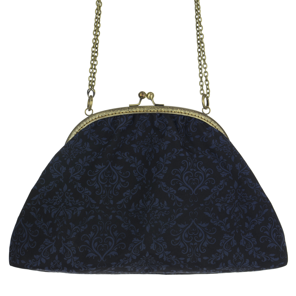 Αυτή είναι η Dafne's Bag από viscose τυπωμένη με μελάνια νερού*. Μια θηλυκή τσάντα που μπορεί να φορεθεί χιαστί και στον ώμο ρυθμίζοντας με τους ανοιγόμενους κρίκους το μήκος της αλυσίδας. Αφαιρώντας τελείως την αλυσίδα μπορεί να κρατηθεί και σαν clutch. Το κλείστρο της είναι ραμμένο βελονιά-βελονιά στο χέρι. Το ύψος της τσάντας είναι 22cm, το πλάτος στο κάτω μέρος 36cm και το άνοιγμα του κλείστρου είναι 25 cm.